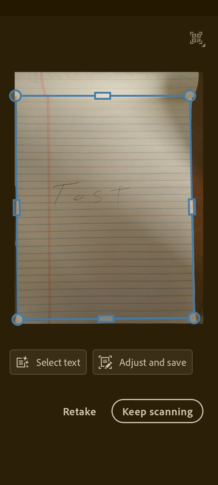 Please see website for more Adobe Scan directions: https://www.adobe.com/devnet-docs/adobescan/ios/en/scan.html