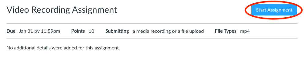Step 1. In your Canvas course please find the assignment you need to do the video recording for. (You find it under 'Assignments' or 'Modules')