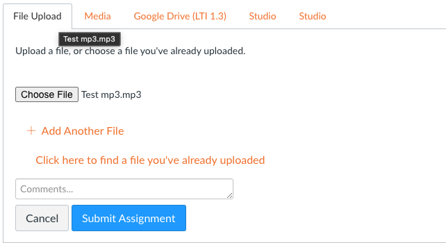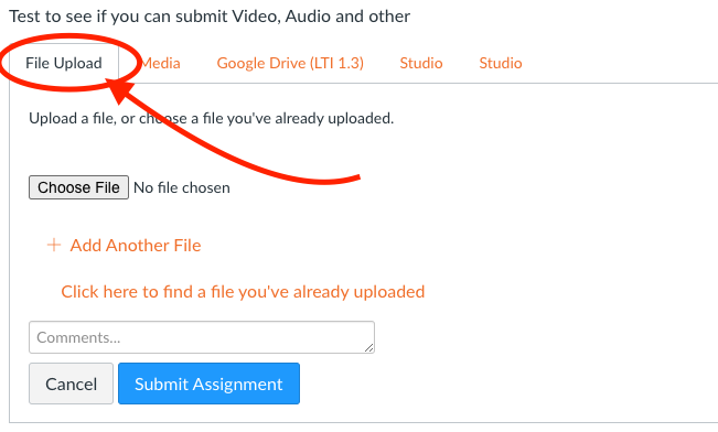 Step 1. In your Canvas course please find the assignment you need to do the audio recording for. (You find it under 'Assignments' or 'Modules')