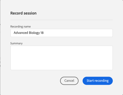 Step 8. Name of the recording '[Name of Class] [Session Number]' then clock 'Start recording'