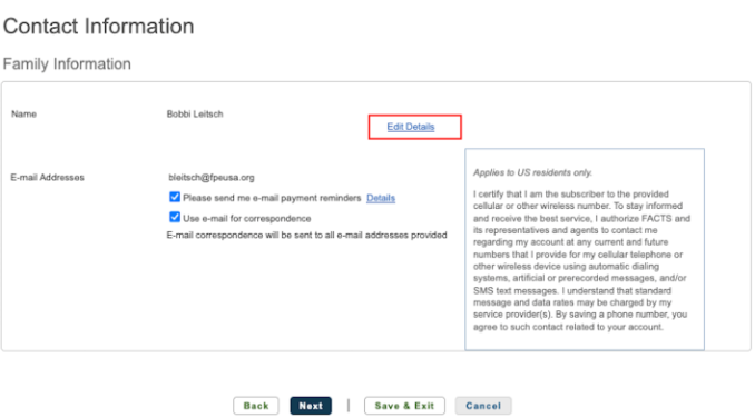 2. Create a new FACTS account (You will fill in the contact Family Information)