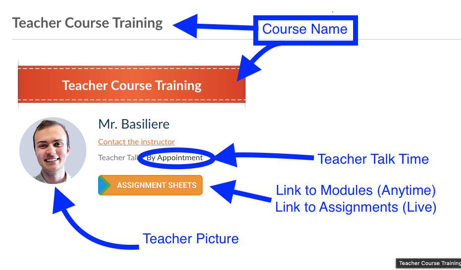 Step 2. Please make sure the homepage of your course looks like the following and understand its meaning in live courses the section meeting times will also be included: