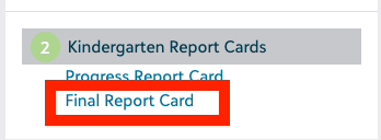*(Performance Tab-Select Report Cards- Select Kindergarten Report Cards > Progress Report Card)