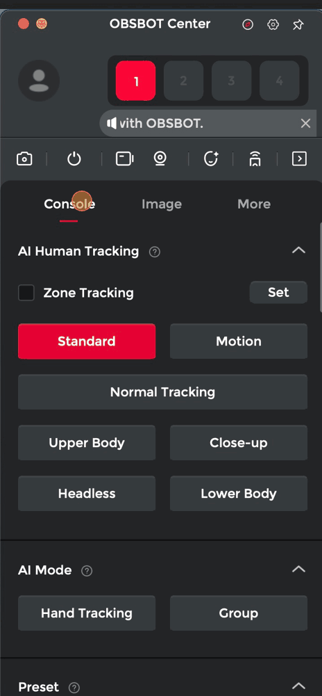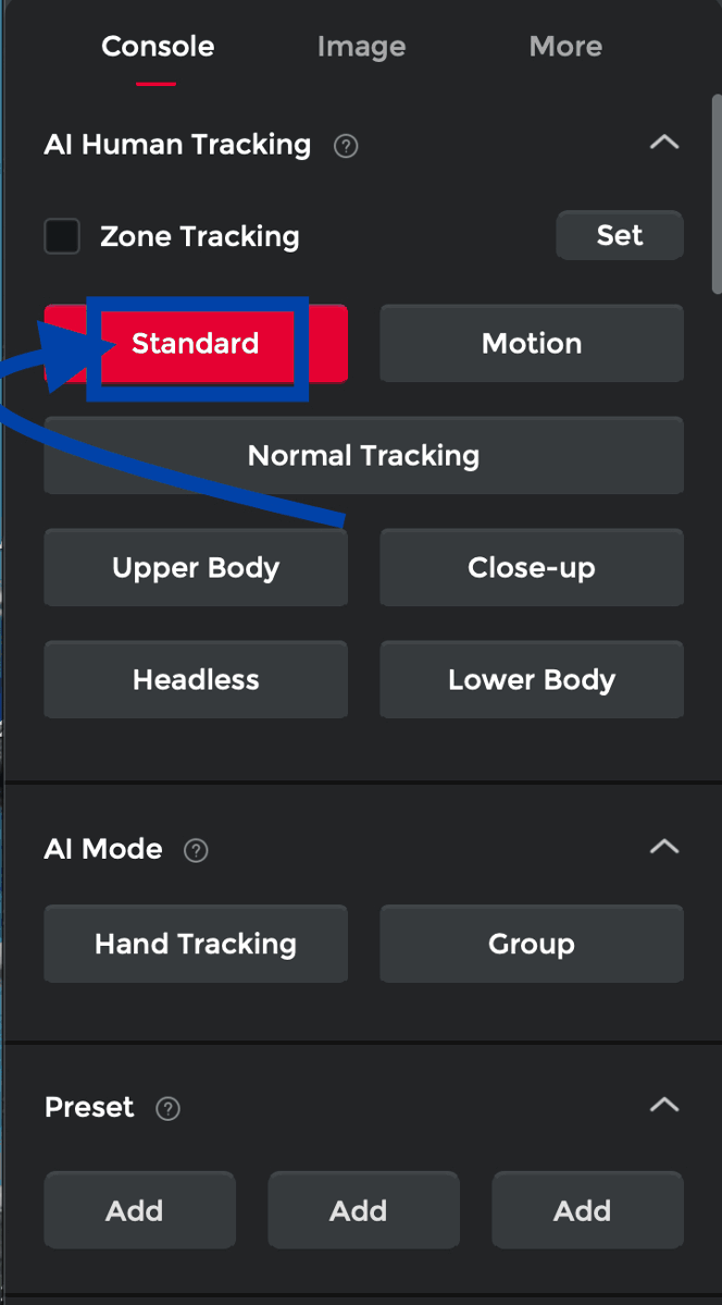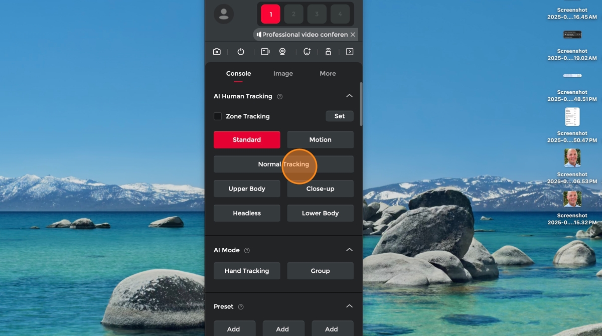 3. Click "Normal Tracking" to adjust the camera position then uncheck the button to station the camera