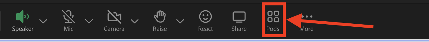 Step 1. In your Adobe Connect classroom click the 'Pods' icon on the Adobe Connect screen.
