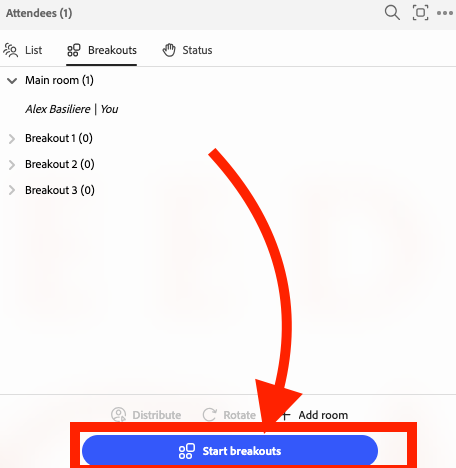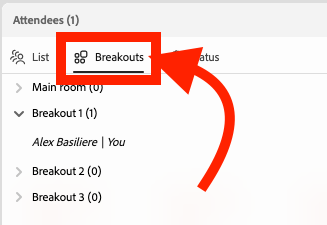 Step 3. Choose the 'Breakouts' option on the 'Attendees' pod
