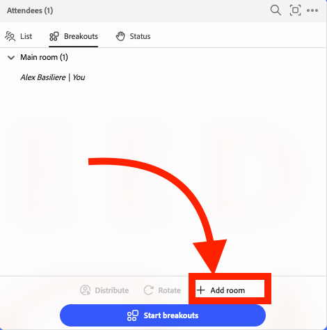 Step 6. You can click the '+ Add room' button at the bottom of the 'Attendees' pod to add a breakout room.